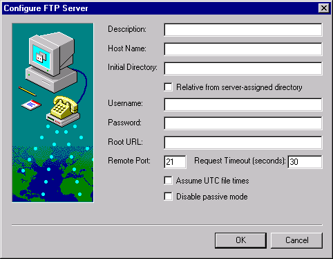 - Initial Directory -- This entry is optional for accounts that default to the root directory of the FTP server, but is required if the account specifies an initial directory.